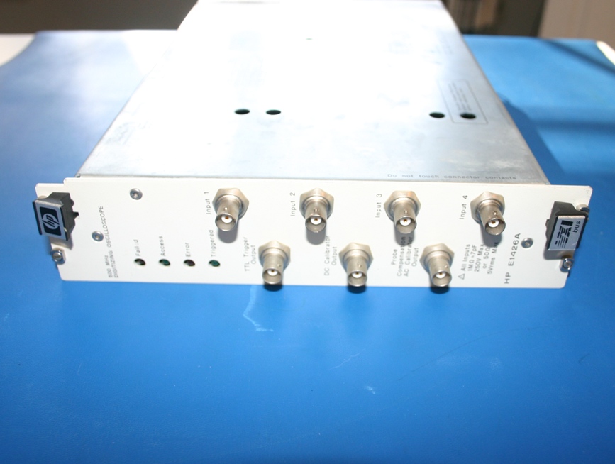 The Hewlett Packard / Agilent E1426A is a VXI digitizing oscilloscope. The E1426A has a 500MHz bandwidth, 4 channels and 20MS/s. The E1426A has a stable triggering and precise timbase circuitry to provide accurate measurements with 8 bits vertical resolution. The E1426A has a programmable attenuation settings that provide sensitivities from 8mV full scale to 40V full scale. The Agilent E1426A comes with both the SCPI command set and an HP 54503A compatable command set. Some of the features are:
