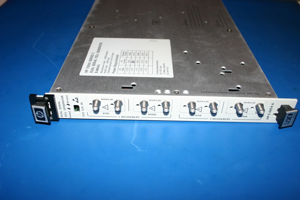 As part of the E4859A Serial Cell Generator and Analyzer System, multiple E4854A dual serial cell generators can be set up to emulate burst-mode data in a network. Cell length, cell content and cell timing can be varied for each generator to allow characterization of the transmission performance under real network conditions, even for designs using proprietary cell formats.